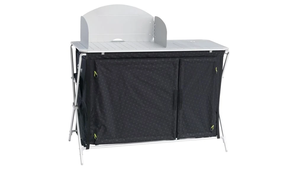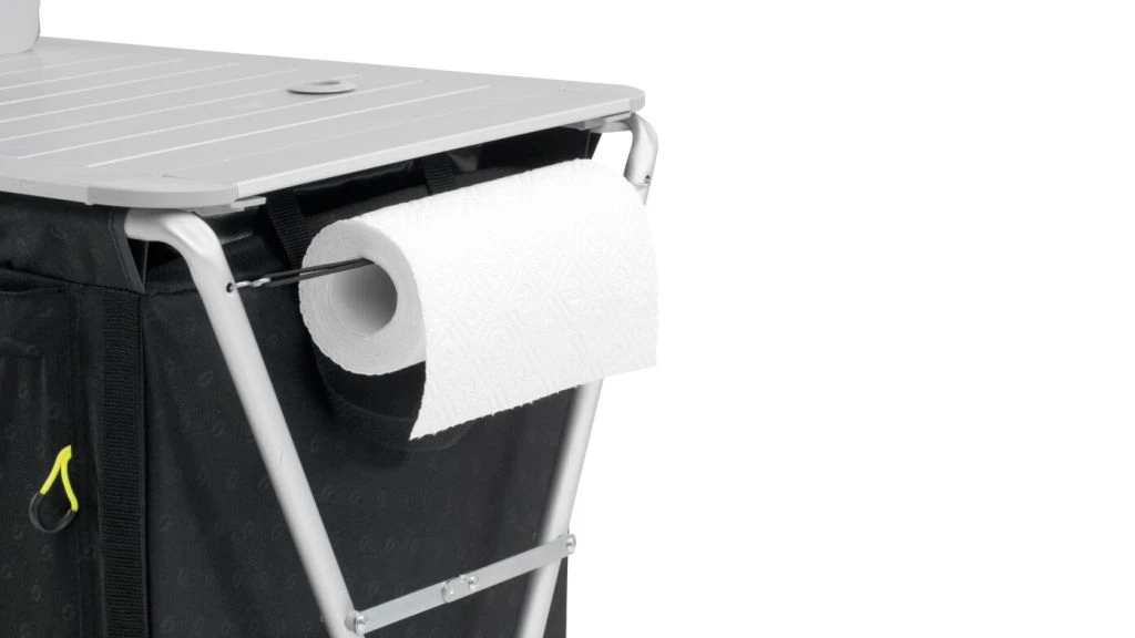 The table top is also aluminium and includes a collapsible water basin that is easily accessible through the table top.