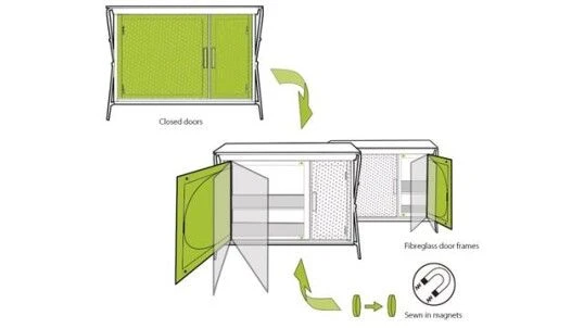 With a solid door and handle to provide a noise free and home-like easy access to storage space as well as magnets to seal the door to cabinet.