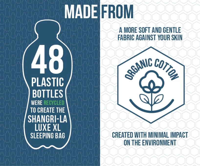 - Organic Polycotton Shell- Created using a mixture of recycled polyester and organic cotton to create a high quality, sustainable polycotton fabric. This shell fabric offers increased comfort, softness and a luxury home from home sleeping experience.